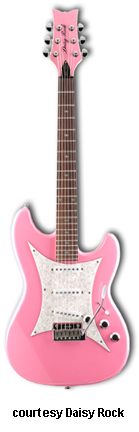 REBEL ROCKIT SUPERNOVA | - offset double cutaway Strat-style alder body, bolt-on maple neck, 22-fret rosewood fingerboard with diamond inlays, matching finish headstock with three-per-side tuners, Wilkinson two-point vibrato bridge, four-point pearloid pickguard, three single coil Duncan Designed pickups, three knobs (v, two tone), five-way pickup switch, chrome hardware, available in Cosmic Pink or Galaxy Green finish, 25.5 in. scale, mfg. 2007-present. |