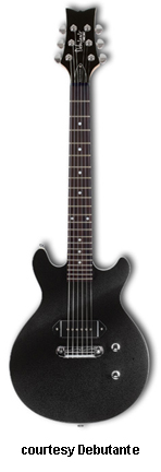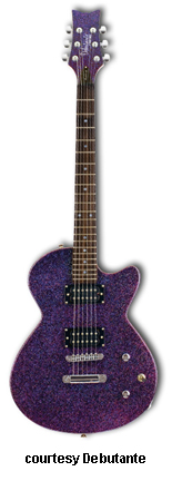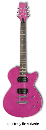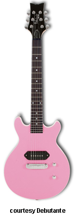 STARDUST ELITE PETITE REBEL | - symmetrical double cutaway hardwood body, bolt-on maple neck, 22-fret rosewood fingerboard with dot inlays, matching finish headstock, three-per-side tuners, wraparound combination bridge/tailpiece, single vintage P-90 pickup, two knobs (v, tone), chrome hardware, available in Jett Black or Sheena Pink finish, 22.5 in. scale, gig bag included, new summer 2008. |