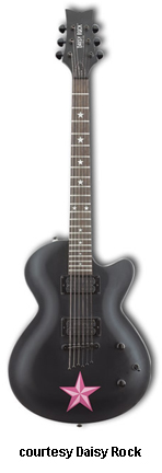 DAISY ROCK | ELECTRIC: ARTIST, HEARTBREAKER, ROCK, & STAR SERIES | | BUTTERFLY (ARTIST) | - butterfly-shaped basswood body, rock maple neck, 22-fret rosewood fingerboard with daisy inlays, single Duncan design humbucker pickup, two knobs, three-way switch, chrome hardware, available in Fantasy or Monarch finish, mfg. 2004-07. |