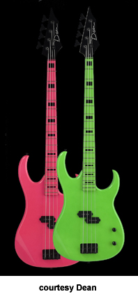 CUSTOM ZONE BASS | - offset double cutaway P-style basswood body, bolt-on maple neck, 22-fret color-matched fingerboard with block inlays, four-on-one-side tuners, die cast bridge, single exposed split coil P-style pickup, two knobs, black hardware, available in Classic Black, Flour. Pink, Metallic Red, or Nu Q Ler Green finish, 34 in. scale, new 2007. |