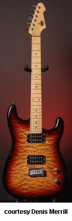 Master builder, designer, and restoration artist Denis Merrill has trained with the finest craftsmen in the world. He builds classical, acoustic and electric guitars, basses, archtops, mandolins, and harp guitars. He specializes in innovation and is able to create instruments for all different body types and physical conditions. He is a classically trained fine artist with work in museum and private collections. He has written numerous articles relating to the art and craft of guitar making.