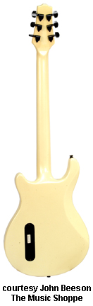 U.S.A. MAP GUITAR (U.S. MFG.) | - map-shaped mahogany body, set-in neck, chrome hardware, tune-o-matic bridge, stop tailpiece, two covered humbucker pickups, four knobs (two v, two tone), three-way selector switch, mfg. 1983 only. |
