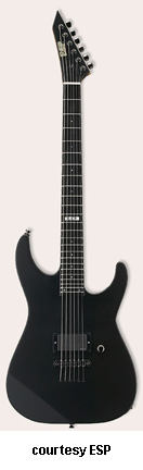 M-I NECK-THRU-BODY (STANDARD SERIES) | - offset double cutaway Strat-style alder body, three-piece maple neck-thru-body, ebony fingerboard with abalone dots and 12th fret ESP inlays, reverse headstock, six-on-the-other-side Gotoh Magnum lock tuners, Gotoh tune-o-matic bridge, STB, single EMG 81 active pickup, single volume knob, black hardware, available in Black Satin finish, 25.5 in. scale, mfg. 2007-present. |