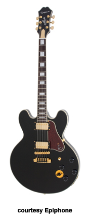 - dual cutaway semi-hollow ES-335 style laminated maple body, set maple neck, 22-fret rosewood fingerboard with block inlay, tune-o-matic bridge, tuneable tailpiece, two covered humbuckers, four knobs (two v, two tone), three-way toggle switch, six-position Vari-Phase switch, gold hardware, available in Ebony finish, 24.75 in. scale, mfg. 1997-present. |