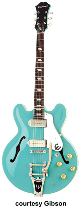 Casino Reissue Vibrotone (Model ETCA) | - similar to the Casino Reissue, except has a Vibrotone bridge and tailpiece, available in Ebony, Gold Flake, Natural, Silver Flake, Turquoise, or Vintage Cherry Sunburst, mfg. 1997-99. |
