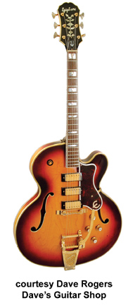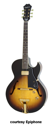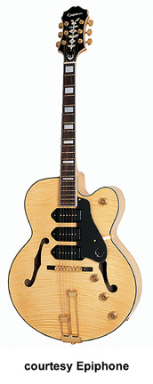 ZEPHYR BLUES DELUXE (MODEL ETA3) | - based on the 1949 Gibson ES-5, Flame Maple top, Flame maple body, maple set neck, rosewood fingerboard with block inlays, bound body and neck, f-holes, three Alnico-V P-90 pickups, three volume controls and one master tone control, gold hardware, available in Natural or Vintage Sunburst finish, mfg. 1999-2005. |