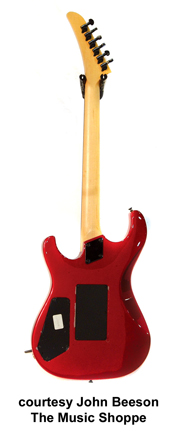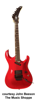 PRO | - offset double cutaway carved poplar body, bolt-on maple neck, 24-fret diagonal rosewood fingerboard with offset dot inlay, six-on-one-side tuners, Floyd Rose licensed tremolo bridge, one Gibson SC-2 single coil and one Gibson L-8 humbucker pickups, two knobs, three-way switch, black hardware, 25.5 in. scale, available in Alpine White, Black, or Candy Apple Red finishes, mfg. 1989-1992. |