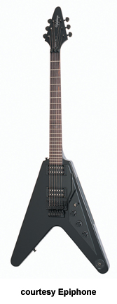 1958 Gothic Flying V Floyd Rose (Model EGV2) | - similar to the 1958 Gothic Flying V, except has a Floyd Rose double locking tremolo, mfg. 2002-06. |