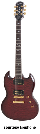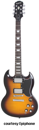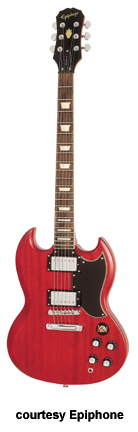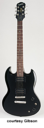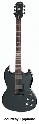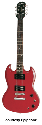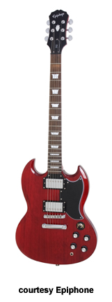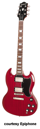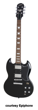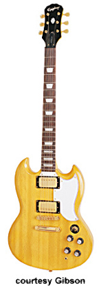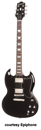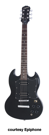 SG SPECIAL (MODEL ESGS) | - double sharp cutaway (SG) laminated alder/maple body, maple neck, rosewood fingerboard with dot inlay, 2 Epi open coil humbucker pickups, chrome hardware available in Cherry or Ebony finishes, current mfg. |