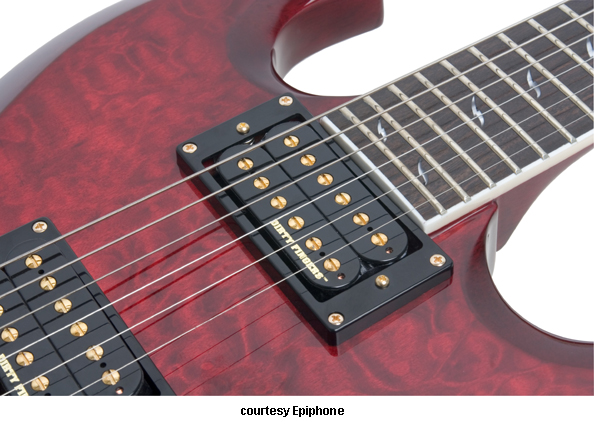 SG Custom Prophecy GX (EGSE) | - similar to the SG Prophecy Custom EX, except has two Gibson Dirty Fingers exposed pickups with a coil tap switch in the volume knob and gold hardware, available in Black Cherry finish, new 2008. |