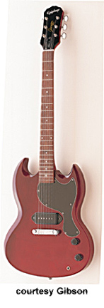 G-310 Junior (Model EGGJ) | - similar to G-310, except has a laminated alder/maple SG-style body, available in Ebony, Cherry, or TV Yellow finishes, disc. 2000. |