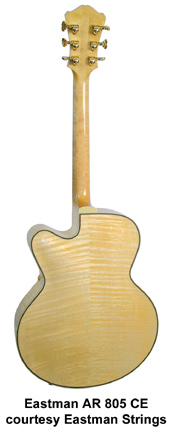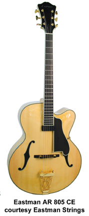 EASTMAN | Instruments currently produced in China. Distributed in the U.S. by Eastman Strings. | Eastman Strings was founded by Qian Ni in 1992. Qian came from China to the U.S. to study music, and, at first, started importing violins from his hometown in China. Shortly after this he founded a workshop with several master violinmakers, using old world techniques. Now they produce a wide variety of instruments including guitars, violins, cellos, basses, bows, and other accessories. For acoustic models, refer to the Blue Book of Acoustic Guitars. For more information, visit Eastman's website or contact them directly (see Trademark Index). | | ELECTRIC ARCHTOP |
