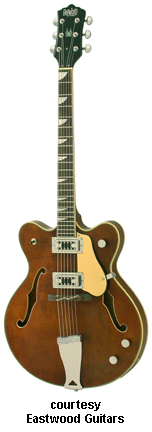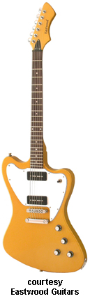 EASTWOOD GUITARS | Electric guitars currently produced in Korea since 2001. Distributed by Eastwood Guitars in Georgetown, Ontario, Canada. | President Mike Robinson produces vintage remakes of many obscure electric guitars from the late 1950s and 1960s. Many luthiers have taken to reproducing poular Fenders, Gibsons, and Danelectros, but Eastwood Guitars focuses on some of the more "oddball" examples including Supro, Mosrite, and Airline. Eastwood-branded Airline guitars actually have Airline on the headstock and with Jack White of the White Stripes playing a red model, these have become very popular. Eastwood Guitars' lineup includes several models that are well-built, but offered at a reasonable price. For more information, visit Eastwood's website or contact them directly (see Trademark Index). | | ELECTRIC/ELECTRIC BASS |