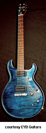 EYB GUITARS | Instruments currently built in Leonberg, Germany since 1984. | Luthier Günter Eyb handcrafts custom electric guitar and bass models. Models are constructed using a wide range of clever designs based on classic configurations, and utilize additional piezo pickups and sustainer pickups. Electric guitars start at $2,380, electric basses start at $2,250, and several options are available for both. For more information, visit EYB's website or contac them directly. | |