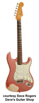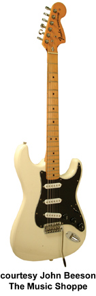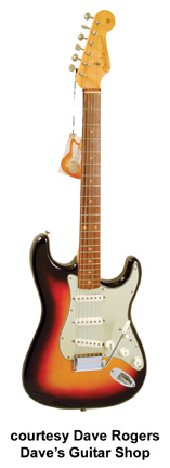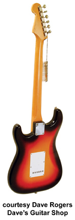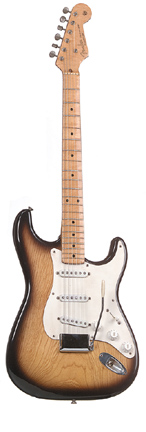 FENDER | Stratocaster: Early Models (1954-1985 Mfg.) | This category covers the Stratocaster from its inception in 1954 to the end of CBS production in late 1984. No U.S. production of the Stratocaster, other than the Vintage Reissue models, occured in 1985 and the only model standard production Stratocaster was produced in Japan. In 1986, Fender introduced the new American Standard Stratocaster under new managment led by Bill Schultz. The Stratocaster is Fender's most popular guitar and they produced thousands of them. Changes in production were fairly well documented and they often happened within a short period of time. While the basic information about Stratocasters between 1954 and 1984 are covered here, several books and other articles are written about the topic, and we suggest looking into these titles for more detailed information. Custom color Stratocaster's are extremely collectible in regards to their standard Sunburst counterparts. Blonde and Black finishes were introduced early on, but most custom colors were introduced in 1958. Below is a list of Stratocaster custom colors. All values listed below are for standard finishes, which is most ofen 2-Tone or 3-Tone Sunburst. Please note that since there are so many variations of Stratocasters (finishes, body woodes, fingerboards, etc.) that each guitar needs to be individually appraised and evaluated. The following values listed are strictly a general guideline, and we suggest getting more than one opinion when buying or selling a Stratocaster.