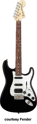 Highway 1 Stratocaster HSS (U.S. Mfg., No. 011-1700/1760) | - similar to the Highway 1 Stratocaster, except has Fender Atomic II humbucker and two single coil pickups HSS, available in 3-Color Sunburst (2007-present), Black (2006-present), Crimson Red Trans. (2003-06), Daphne Blue (2006 only), Sapphire Blue Trans. (2002-06), Walnut (disc), or Wine Trans./Midnight Wine (2006-present) finish, mfg. 2003-present. |
