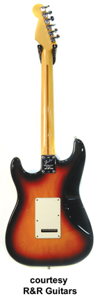 40TH ANNIVERSARY STRATOCASTER (U.S. MFG.) | - bolt-on maple neck, three single coil pickups, volume/tone controls, five-way switch, stamped neckplate with serial number (# out of 1,954), mfg. 1994 only. |