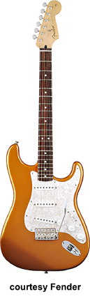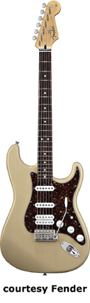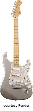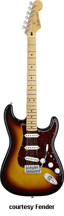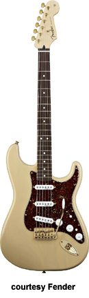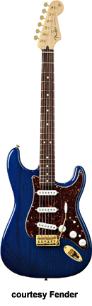 DELUXE PLAYERS STRAT (MEX. MFG. NO. 013-3000/3002) | - ash body, maple C-Shaped neck, 21-fret maple (3002) or rosewood (3000) fingerboard with dot inlay, three single coil Noiseless pickups, vintage style tremolo, tortoiseshell pickguard, three knobs (v, two tone), five-way switch, gold plated hardware, available in 3-Color Sunburst, Crimson Red Trans., Honey Blonde, or Saphire Blue Trans. finish, 25.5 in. scale, mfg. summer 2004-present. |