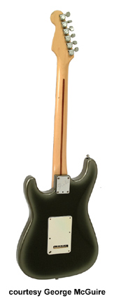STRAT ULTRA (U.S. MFG. NO. 110-9800) | - similar to the Strat Plus, except has a figured maple top/back, alder body, ebony fingerboard with abalone dot inlay, Floyd Rose vibrato, four Lace Sensor single coil pickups Blue/Silver/two Red (Dually configured), and a mini switch, available in Antique Burst, Black, Blue Burst, or Crimson Burst finish, mfg. 1990-99. |