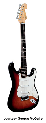 FENDER | Stratocaster: Strat Plus Series | The American-built Strat Plus Series models are the upscale versions of the American Standard Series Stratocasters. Newer models feature LSR roller nuts and locking tuners. | STRAT PLUS (U.S. MFG. NO. 010-7500/7502) | - offset double cutaway alder body, bolt-on maple neck, 22-fret maple (7502) or rosewood (7500) fingerboard with dot inlays, six-on-one-side Sperzel or Schaller locking tuners, LSR roller nut, vibrato bridge, white shell pickguard, three single coil Lace Sensor Gold pickups, three knobs (v, two tone), five-position switch, chrome hardware, available in Arctic White (disc. 1996), Black, Black Pearl Dust (disc. 1996), Blue Pearl Dust (disc. 1996), Brown Sunburst, Candy Apple Red (1997-99), Caribbean Mist (disc. 1996), Grafitti Yellow, Inca Silver (1997-99), Lipstick Red (disc. 1996), Midnight Blue (disc. 1996), Midnight Wine (disc. 1996), Sonic Blue (1997-99), Vintage White (1997-99) finish, mfg. 1987-1999. |