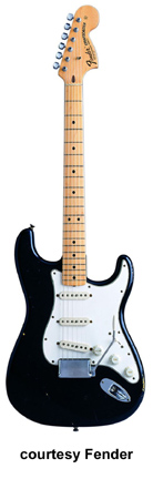 '69 Stratocaster Relic (No. 015-1900/1902) | - similar to the '69 Stratocaster NOS except with Relic finish/wear, available in 3-Color Sunburst, Black, Olympic White (1999-2008), or Vintage White (new 2009) finish, mfg. 1999-present. |