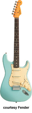 '60 Stratocaster Relic (No. 015-0900/0910) | - similar to the '60 Stratocaster NOS except with Relic finish/wear, available in 3-Color Sunburst, Black (new 2009), Daphne Blue (1999-2008), Fiesta Red (1999-2008), Olympic White (1999-2008), or Surf Green (new 2009) finish, mfg. 1999-present. |