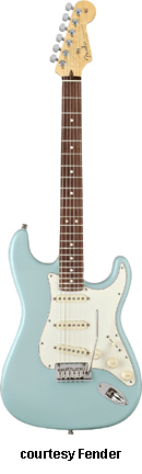 AMERICAN CLASSIC STRATOCASTER (U.S. MFG. NO. 010-4700/4702/4710/4712) | - offset double cutaway alder body, bolt-on lightly figured maple neck, 22-fret maple (4702, 4712) or rosewood (4700, 4710) fingerboard with dot inlays, six-on-one-side tuners, American Standard vibrato bridge, white pickguard, three Texas Special single coil pickups, three knobs (v, two tone), five-way switch, chrome (4700, 4702) or gold (4710, 4712) American Standard hardware, available in 3-Tone Sunburst, 2-Tone Sunburst, or Black Holo-Flake, Olympic White, or White Blonde finish, mfg. 1992-98. |