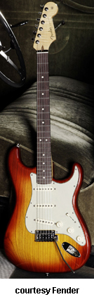CLASSIC PLAYER STRAT FIRST VERSION (U.S. MFG NO. 010-0600/0700) | - offset double cutaway alder or ash body, bolt-on C-shaped (0700, 0702) or V-shaped (0600, 0602) maple neck, 22-fret maple (0602, 0702) or rosewood (0600, 0700) fingerboard with dot inlays, six-on-one-side Sperzel Trim-Lok tuners, two-point vintage-style vibrato bridge, gold anodized or parchment pickguard, three Custom Shop Noiseless single coil pickups, three knobs (v, two tone), five-way switch, available in Aged Cherry Sunburst, Black, or Teal Green Trans. finish, mfg. 1998-2000. |