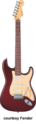 CLASSIC PLAYER STRAT SECOND VERSION (U.S. MFG. NO. 015-6600/6700) | - thin lacquer-finished alder or ash body, C-shaped (6700, 6702) or V-shaped (6600, 6602) lightly figured maple neck, 22 Medium-Jumbo frets, maple (6602, 6702) or rosewood (6600, 6700) fingerboard with abalone dot position markers, lightly figured Sperzel Trim-Loc tuners, custom vintage two-point synchronized tremolo, three Custom Shop Vintage-Noiseless pickups, gold anodized pickguard, aged white plastic parts, available in 2-Color Sunburst, 3-Color Sunburst, Black, Bing Cherry Trans., Cobalt Blue Trans., Honey Blonde, Midnight Blue, or Midnight Wine finish, mfg. 2001-05. |