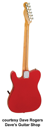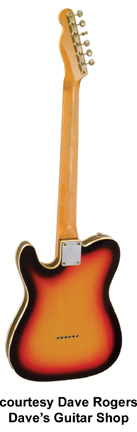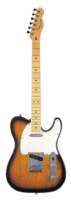 TELECASTER CUSTOM (MFG. 1959-1972) | - bound alder body, white pickguard, 21-fret maple fingerboard with pearl dot inlay, strings through bridge, chrome hardware, 2 single coil pickups, volume/tone controls, 3-position switch, controls mounted metal plate, available in Sunburst and custom colors finishes, mfg. 1959-1972. |
