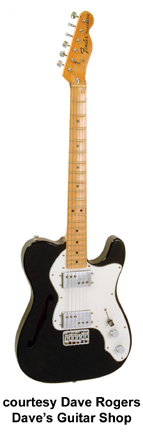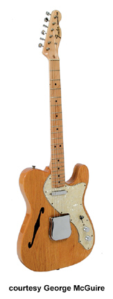TELECASTER THINLINE (MFG. 1968-1971) | - similar to the Telecaster except has a hollow mahogany or ash body with an f-hole, an enlarged pickguard, rearranged knobs and switch, available in Blonde and custom colors, mfg. 1968-1971. |