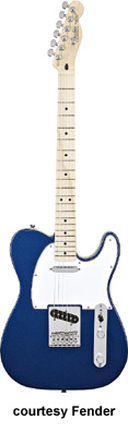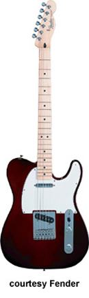 FENDER | Telecaster: Standard Series (Current Mfg.) | In 2006, an upgraded model was introduced with shielded body cavities, re-voiced pickups, thicker bridge, and all come with a gig-bag. In 2009, a tinted neck, parchment pickguard and knobs, and a 70s-style logo were introduced. | STANDARD TELECASTER (MEX. MFG. NO. 013-5102/013-5202) | - single cutaway poplar body, bolt-on maple neck, 21-fret maple fingerboard with black dot inlays, six-on-one-side tuners, fixed bridge, chrome hardware, three-ply white pickguard, two single coil pickups, two knobs (v, tone) and a three-way switch mounted on a metal plate, available in Arctic White, Black, Blue Agave (2001-05), Brown Sunburst, Candy Apple Red (new 2009), Chrome Red (2006-08), Cirmson Red Metallic (disc. 1997), Electron Blue (2006-08), Lake Placid Blue (disc. 1997, reintroduced 2009), Midnight Blue (2001-06), Midnight Wine (1998-present), or Sage Green Metallic (disc. 2005) finish, mfg. 1991-present. |