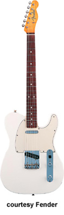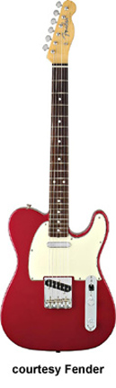 '60s TELECASTER (MEX. MFG. NO. 013-1600) | - single cutaway alder body, bolt-on maple neck, 21-fret rosewood fingerboard with pearl dot inlays, six-on-one-side Fender Vintage tuners, vintage-style three-saddle bridge, two Vintage style single coil pickups, two knobs (v, tone) and a three-way switch mounted on a metal plate, chrome hardware, available in Black, Candy Apple Red, or Olympic White finish, mfg. summer 2001-present. |