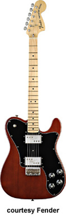 '72 TELECASTER DELUXE (MEX. MFG. NO. 013-7702) | - single cutaway alder body, bolt-on maple C-shaped neck, 21-fret maple fingerboard with black dot inlay, '70s Strat-style headstock with six-on-one-side tuners, three-ply black pickguard, two wide-range humbucker pickups, four knobs (two v, two tone), three-way switch, Vintage Strat-style STB hardtail bridge, chrome hardware, available in 3-Color Sunburst (2004-06, reintroduced 2009), Black, or Walnut Satin finish, 25.5 in. scale, mfg. 2004-present. |