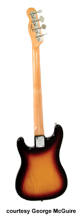 FENDER | ELECTRIC BASS: BULLET SERIES | | BULLET B30 | - offset double cutaway alder body, bolt-on maple neck, 19-fret maple fingerboard with black dot inlay, fixed bridge, tele-style peghead, white pickguard, one split covered pickup, two knobs (v, tone), chrome hardware, available in Brown Sunburst, Custom Colors, Ivory, Red, or Walnut finish, mfg. 1982-83. |