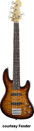 Jazz Bass 24 V Five-String (Korea Mfg. No. 026-1000) | - similar to the Jazz Bass 24, except in five-string configuration with 4/1-per-side tuners, available in Flat Black (new 2009) or Tobacco Sunburst (2007-08) finish, mfg. 2007-present. |