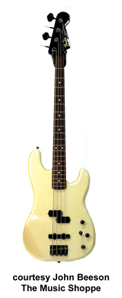 CONTEMPORARY JAZZ BASS (JAPAN MFG. NO. 027-9000) | - offset double cutaway ash body, bolt-on maple neck, 20-fret or fretless rosewood fingerboard with pearl dot inlay, carbon graphite nut, four-on-one-side Fender/Gotoh tuners, fixed bridge, one P-style and one J-style pickups, volume/tone/frequency sweep controls, chrome hardware, available in various finishes, mfg. 1987 only. |