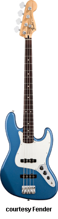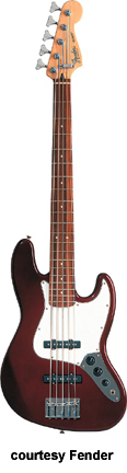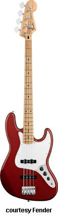 FENDER | Jazz Bass: Standard Series | The Standard Jazz Bass Series was renumbered 013-6200 in 2001 (previously 013-6500). In 2006, an upgraded model was introduced with medium-jumbo frets, shielded electronics for reduced hum, and all come with a gig-bag. In 2009, a tinted neck, parchment pickguard and knobs, and a 70s-style logo were introduced, and a maple fingerboard became optional. | STANDARD JAZZ BASS (MEX. MFG. NO. 013-6500/6200/6202) | - offset double cutaway Jazz Bass-style poplar body, bolt-on maple neck, 20-fret maple fingerboard with black dot inlays (6202, new 2009) or rosewood fingerboard with white dot inlays (6200/6500), Jazz Bass-style headstock, four-on-one-side tuners, Jazz Bass bridge with individual saddles, three-ply white pickguard, two J-style pickups, three knobs (v, two tone), chrome hardware, available in Arctic White, Black, Blue Agave (2002-05), Brown Sunburst (1994-present), Candy Apple Red (new 2009), Chrome Red (2006-08), Crimson Red Metallic (disc. 1998), Electron Blue (2006-08), Lake Placid Blue (disc. 1998, reintroduced 2009), Midnight Blue (1998-2001), Midnight Wine (1998-2008), or Sage Green Metallic (2002-05) finish, mfg. 1988-present. |