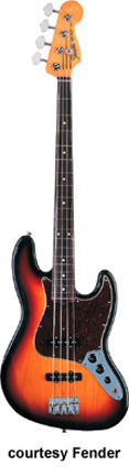 '60s JAZZ BASS (MEX. MFG. NO. 013-1800) | - offset double cutaway alder body, bolt-on maple neck, 20-fret rosewood fingerboard with pearl dot inlays, four-on-one-side vintage reverse tuners, Vintage four-saddle bridge, tortoise pickguard, two vintage-style Bi-pole pickups, three black knobs (two v, tone), chrome hardware, available in 3-Color sunburst, Black, or Olympic White finish, mfg. summer 2001-present. |