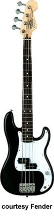 STANDARD PRECISION BASS JR. (MEX. MFG. NO. 013-4000) | - mini version of the Standard Precision Bass, except in a smaller 28.59 in. scale, available in Torino Red or Black finish, mfg. 2004-06. |