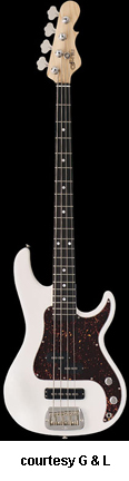 JB-2 BASS | - offset double cutaway alder body (standard finish) or swamp ash (premier finish) body, bolt-on hard rock maple neck, 21-fret maple fingerboard with black dot inlays or rosewood fingerboard with pearl dot inlays, four-on-one-side G&L Ultra-Lite tuners, G&L Saddle-Lock bridge, no pickguard, two Alnico single coil pickups, three knobs (two v, tone), chrome hardware, available in various finishes, current mfg. |