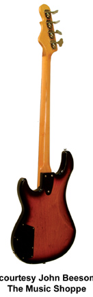 SB-1 | - offset double cutaway maple body, bolt-on hard rock maple neck, 21-fret maple fingerboard with black dot inlays or rosewood fingerboard with pearl dot inlays, four-on-one-side tuners, black pickguard, single split-coil pickup, two knobs (v, tone), chrome hardware, available in various finishes, 34 in. scale, mfg. 1982-2001. |