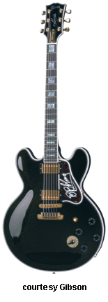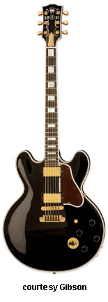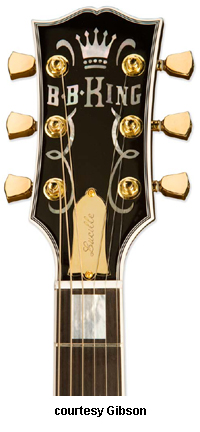 B.B. KING LUCILLE (ARLC) | - similar to B.B. King Standard, except has bound pickguard, bound ebony fingerboard with pearl block inlay, bound peghead, gold hardware, Vari-tone switch, Available in Cherry, Ebony, and Beale Street Blue (BE, mfg. 2002-2004) finish, mfg. 1980-present, current mfg. is in Memphis by the Custom Shop. |