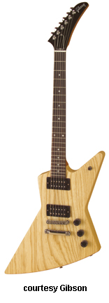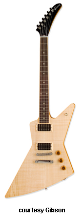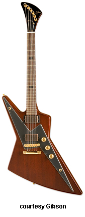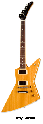 Explorer Heritage (Custom Shop) | - similar to Explorer Korina Reissue, except has stamped serial number on peghead, black pickguard, gold hardware, available in Antique Natural, Ebony, or Ivory finishes, mfg. 1983 only. |