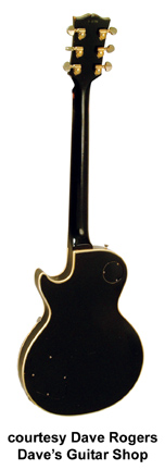 LES PAUL CUSTOM (1957-1961 MFG.) | - similar to 1954-57 mfg., except most have 3 humbucker pickups with metal covers, also available with two humbuckers, stop tailpiece or Bigsby, Ebony finish only, mfg. 1957-1961. |