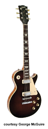 LES PAUL PRO DELUXE (1977-1982 MFG.) | - similar to Les Paul Deluxe, except has ebony fingerboard with crown inlays, chrome hardware, and P-90 pickups, marked "PRO" on truss-rod cover, "Les Paul Model" on unbound headstock, cream colored plastic pickguard, available in Black, Cherry Sunburst, Gold Top, or Tobacco Sunburst finishes, mfg. 1977-1982. |