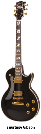 LES PAUL ARTIST | - single cutaway mahogany body, multi-bound carved maple top, raised black pickguard, mahogany neck, 22-fret bound ebony fingerboard with pearl block inlay, tune-o-matic bridge/tunable stop tailpiece, multibound blackface peghead with pearl script LP/logo, 3-per-side tuners, gold hardware, 2 covered humbucker pickups, volume/treble/bass controls, 3-position selector/3 mini switches, active electronics, available in Sunburst finish, less than 500 mfg. 1979-1981. |