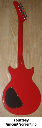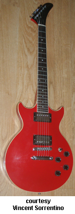 LES PAUL VIXEN (LPVX) | - single sharp cutaway, lightweight mahogany body and top, mahogany neck with rosewood fingerboard and diamond inlays, chrome hardware, Gibson 490R and 498T humbucker pickups, available in Caribbean Blue, Corona Yello, Coral, Ebony or Red Metallic finish, mfg. 2006-07. |