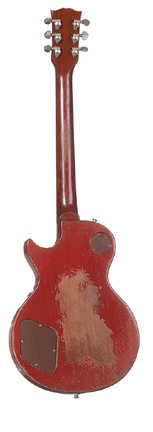 GIBSON | Les Paul: Variations - Misc. | Since the following Les Paul Variations do not fit into any other subcategories, they have been placed under this miscellaneous subheading. | THE LES PAUL | - single sharp cutaway body, rosewood bound carved 2-piece bookmatched flame maple top/back/sides, mahogany core, raised rosewood pickguard, maple neck, 22-fret bound 3-piece ebony/rosewood/ebony fingerboard with abalone block inlay, tune-o-matic bridge/stop tailpiece, pearl split diamond/logo peghead inlay, 3-per-side Schaller tuners with pearl buttons, serial number engraved pearl plate on peghead back, gold hardware, 2 Super humbucker pickups with rosewood trim rings, 2 volume/2 tone rosewood control knobs, 3-position switch, rosewood control plate on back, available in Natural (approx. 70 mfg.) or Wine Red (18 mfg.) finishes, mfg. 1976-1980. |