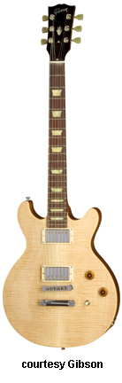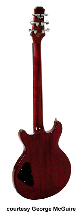LES PAUL DC PRO (LPDC) | - double cutaway mahogany body with AAA curly maple top, mahogany neck with rosewood fingerboard, 60's style slim taper neck, flower pot headstock inlay, chrome hardware, Burstbucker Pro humbucker pickups, one volume/tone controls, three-way pickup switch, tune-o-matic bridge and stopbar tailpiece, available in Black Cherry Natural, Root Beer, Trans Amber, Trans Black, or Trans Red finish, mfg. 2006-07. |